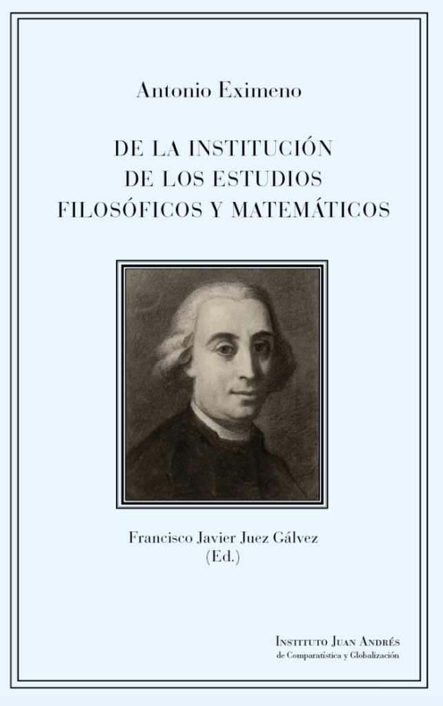 Antonio Eximeno: De la institución de los estudios filosóficos y matemáticos. Introducción de P. Aullón de Haro: Antonio Eximeno y la cuestión epistemológica, Edición, estudio y traducción del latín por F. J. Juez Gálvez, Madrid, Verbum, 2023, 484 pp. (ISBN: 978-84-123714-8-2)