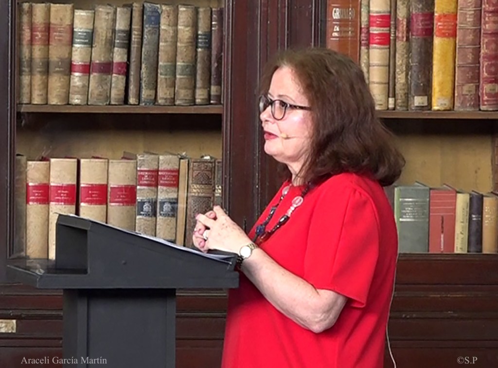 Por su parte, Araceli García Martín, directora de la Biblioteca de la AECID, explicó los motivos de la Distinción Biblioteca otorgada a la Biblioteca del Ateneo[2]. Destacó que la Biblioteca del Ateneo, después de 200 años, ha sido y sigue siendo la seña de identidad de la Institución a la que representa, como espacio que alberga y posibilita el acceso al conocimiento. García Martín relató las circunstancias que hicieron posible el nacimiento del Ateneo, en un proceso de continuidad lógica entre el pensamiento ilustrado y el espíritu liberal que supo erigirse a pesar de las turbulencias derivadas de las invasiones napoleónicas, así como las etapas por las que ha pasado la Institución, en un proceso de ampliación de sus intereses disciplinares, de la que es reflejo la organización de la Biblioteca, para, ya en torno a 1884, incorporar en la sección de Literatura y Artes una subsección de música. Tanto el amplísimo catálogo, que la hace especialmente importante en el patrimonio bibliográfico español, como la capacidad de apoyo a la investigación científica, cultural y artística, justifican la concesión del galardón.