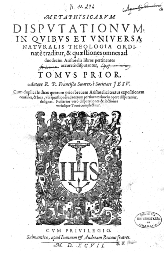 Después de haber examinado la relección de 1598, vamos a adelantarnos unos años y contemplar cómo fue abordado este mismo tema de la libertad divina en una de las obras más conocidas de Suárez, sus Disputationes metaphysicae. En esta obra, publicada en 1597, dedica la disputación 30 a averiguar qué cabe decir sobre Dios desde un punto de vista filosófico[23]. En ese contexto, se ocupa de la voluntad divina y, en particular, de la libertad de Dios.