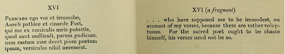 El envés del tapiz —¡qué duda cabe!— nos han sugerido algunas reflexiones. Sobre la perfección (o más bien, imperfección) de las traducciones comenta Manguel: “el arte de la traducción les recuerda a los lectores que no hay una lectura perfecta” (p. 15). Contundente y certera afirmación que a lo largo de la historia se ha querido desmontar, por ejemplo, cuando de libros sagrados se trataba, pues la leyenda sobre la traducción de la Biblia al griego, llamada “Septuaginta o de los Setenta”, busca precisamente indicar que el libro sagrado de los cristianos solo tiene una interpretación posible[6]. Asimismo, cuando se habla de las traducciones que se hacen “con ojos enmendadores” (p. 29) (y que hoy podríamos decir “políticamente correctas”), nos viene a la mente aquellas edulcoradas versiones de los versos más obscenos de Catulo. En el famoso Pedicabo ego vos et irrumabo (carmen XVI) Miguel Dolç opta por traducir “Yo os daré pruebas de mis completas facultades viriles” (Madrid, CSIC, 1997) y Joan Petit, en la misma línea, “Os daré a probar y os impondré mi virilidad” (Barcelona, Los libros de la frontera, 1981). Pero si estas falseadas traducciones nos llaman la atención, por alejarse del sentido y la lengua del poema, no menos lo hace la edición de Catulo de la prestigiosa colección inglesa bilingüe Loeb Classical Library, en la que directamente ponen solo un fragmento del poema en latín y el verso en cuestión ni siquiera se molestan en traducirlo[7].