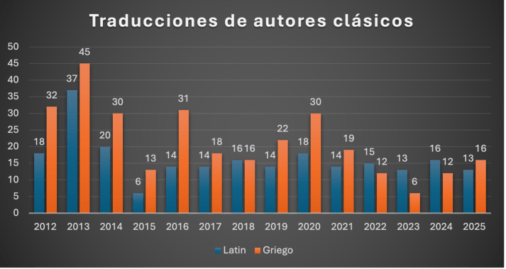 Figura 2: Número de traducciones totales de clásicos grecolatinos desde 2012 hasta 2025