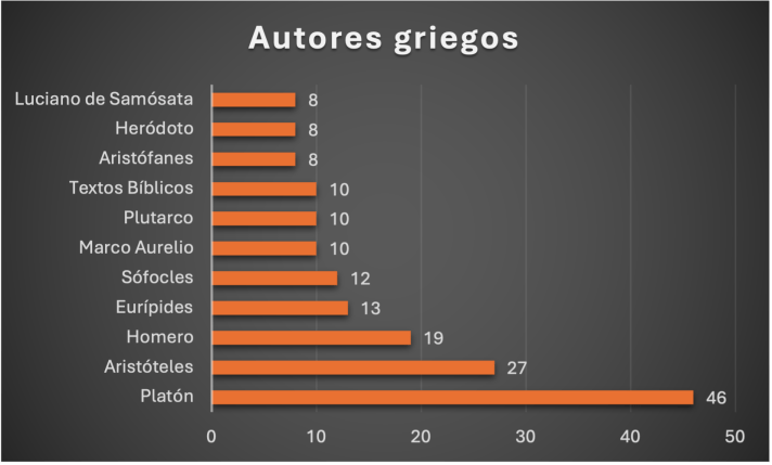 Figura 6: Autores griegos más traducidos en España de 2012 a 2025. Elaboración propia.