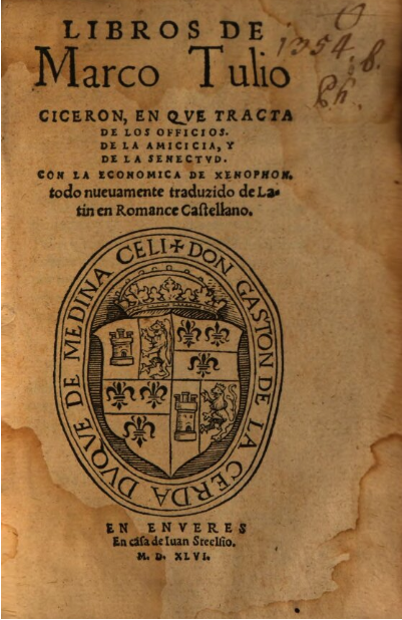 Mención aparte merece la edición de la traducción de los tratados ciceronianos De officiis y De senectute, realizada por Alfonso de Cartagena hacia 1422[12] y estampada en Sevilla en 1501 (CECLE0256), sin continuidad en el XVI.